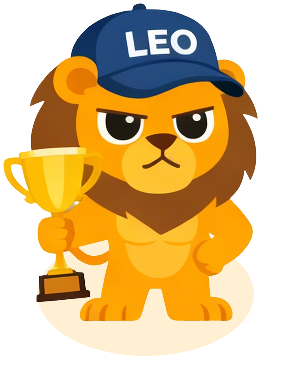 Leo, the lion coach of FitLeo, standing with a trophy 🦁 PRELAUNCH β€” SUMMER 2026